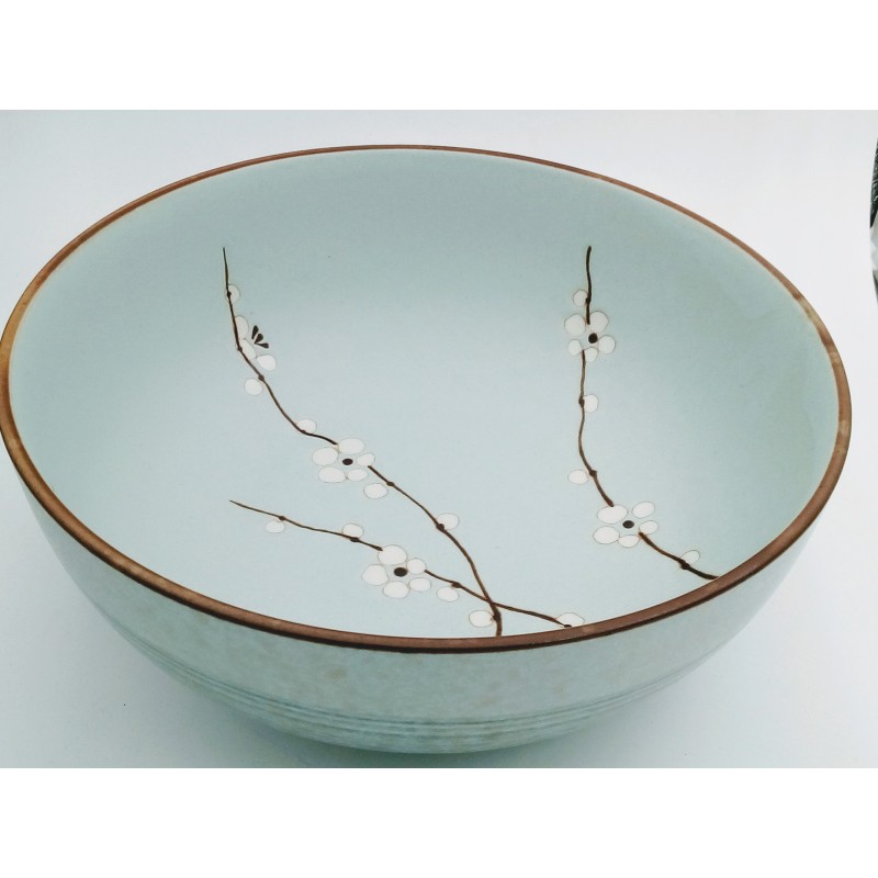 Ce saladier appartient à une collection complète de vaisselle japonaise déclinée dans les mêmes tons beiges et ornée des mêmes motifs. Vous pourrez ainsi composer un service de table cohérent avec des bols, assiettes et saladiers assortis. La collection existe aussi en version bleue, toujours décorée de fleurs de cerisier, pour varier les ambiances ou créer un contraste élégant.